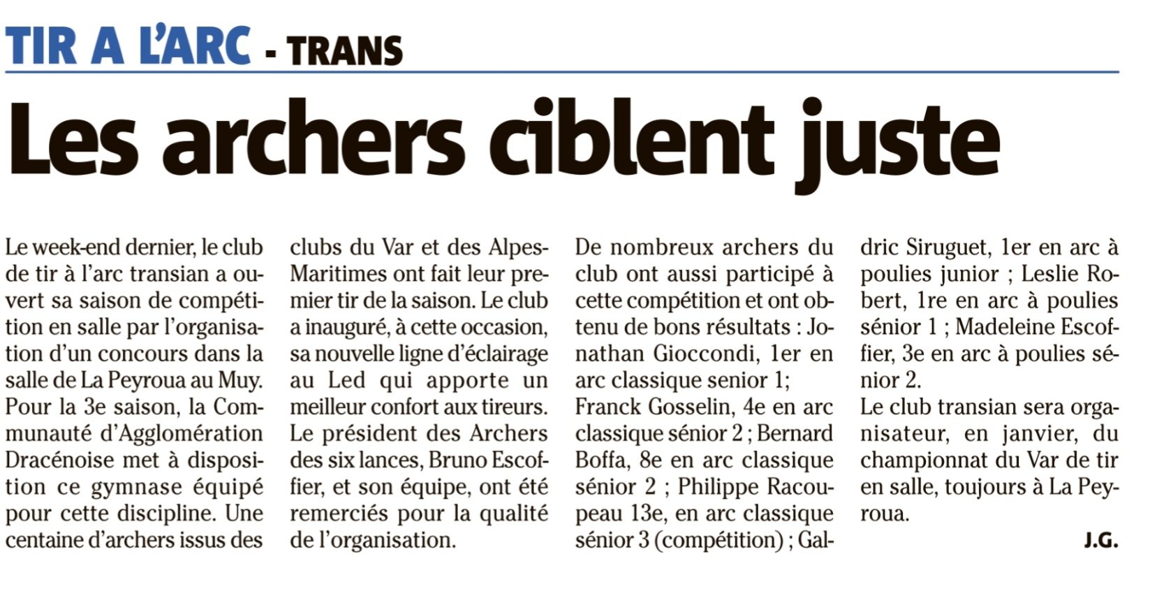 Présence en nombre des archers du club ce week-end au Muy; certains réalisent leur record en salle.